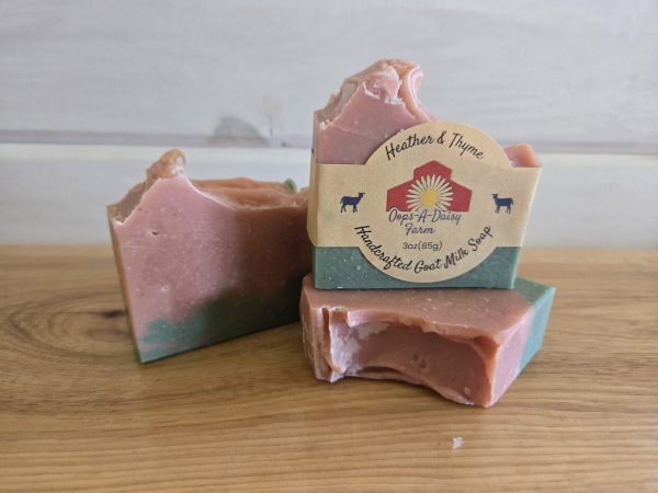 Ingredients: Olive Oil, Goat Milk, Coconut Oil, Palm Oil, Sodium Hydroxide, Fragrance (Heather & Thyme), French Pink Clay, Micas for Color.